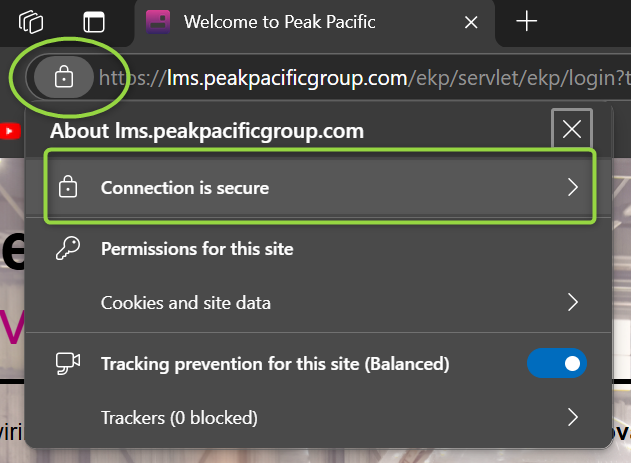 1. Open the Microsoft Edge browser and go to the LMS site via HTTPS.